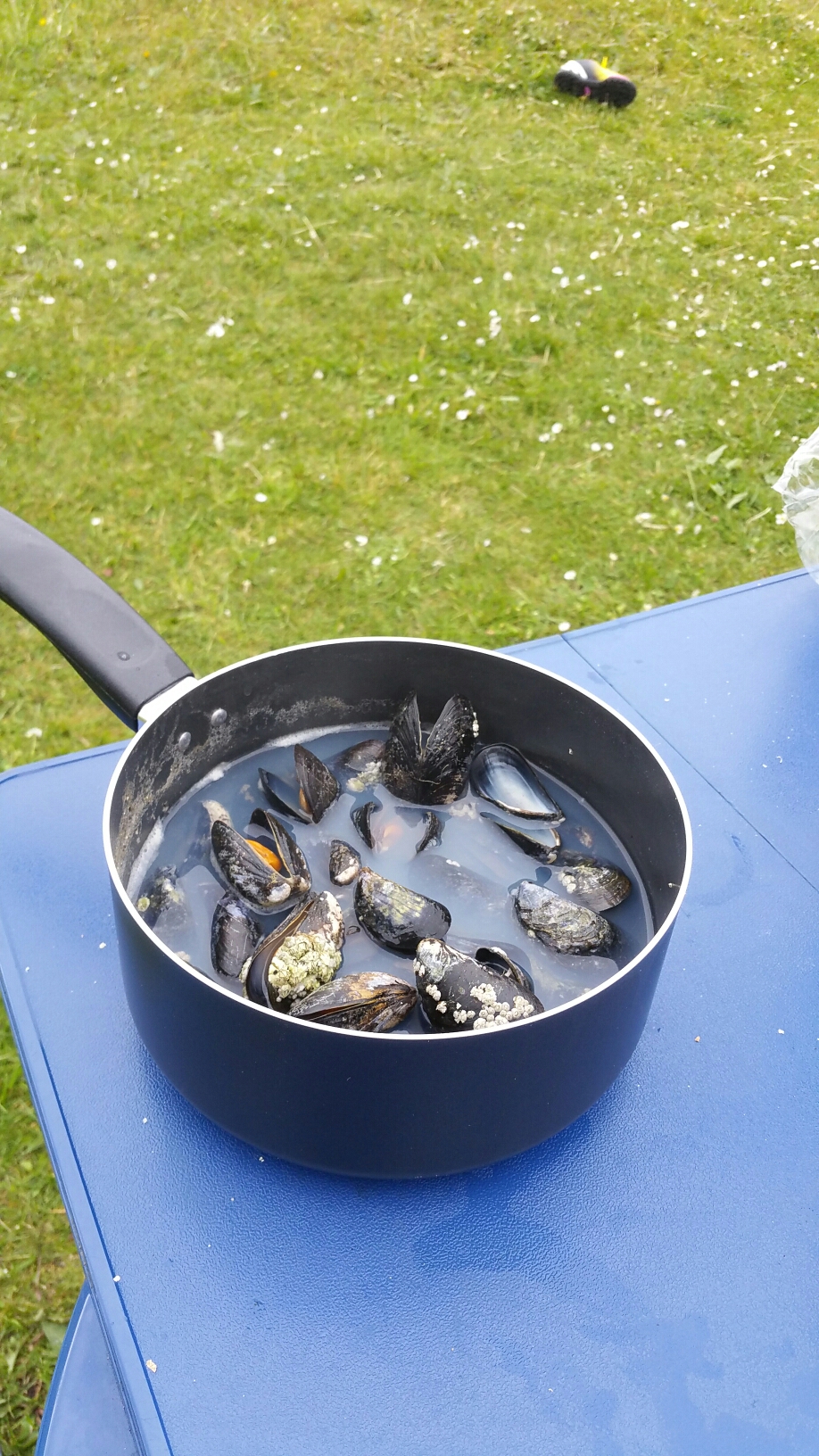 We gathered mussels on the beach and our neighbour in tent beside us provided some Prawns for a last night feast