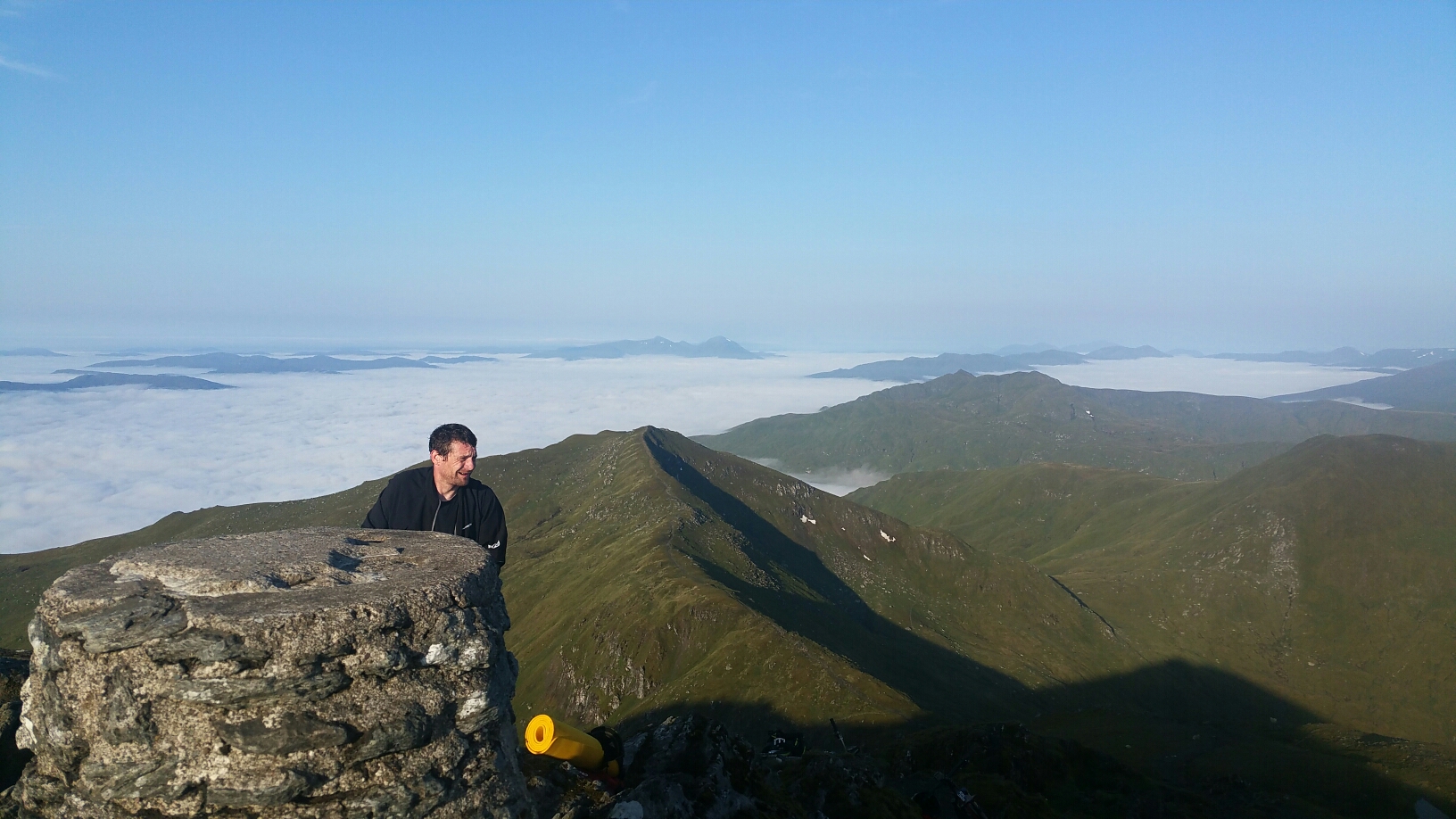 The camp was soon removed.( Leave no trace ) and we somehow managed to reach the summit of Ben Lawers by carrying and pushing the bikes.