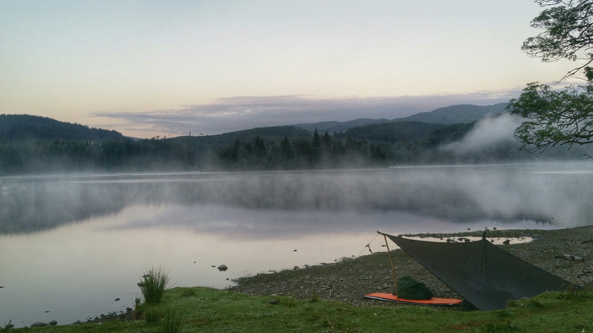 At present I am finishing this blog at 0500am on a Saturday morning I had swam 3km last night at Loch Venachar, and planned to swim this morning. The sky driving home was incredible so on arriving home I grabbed my rucksack a kiss and headed for the meeting point for the Saturday swim Loch Ard. Pitched the tarp at midnight and soon felI into a slumber, sheep ducks and oyster catchers woke me up.