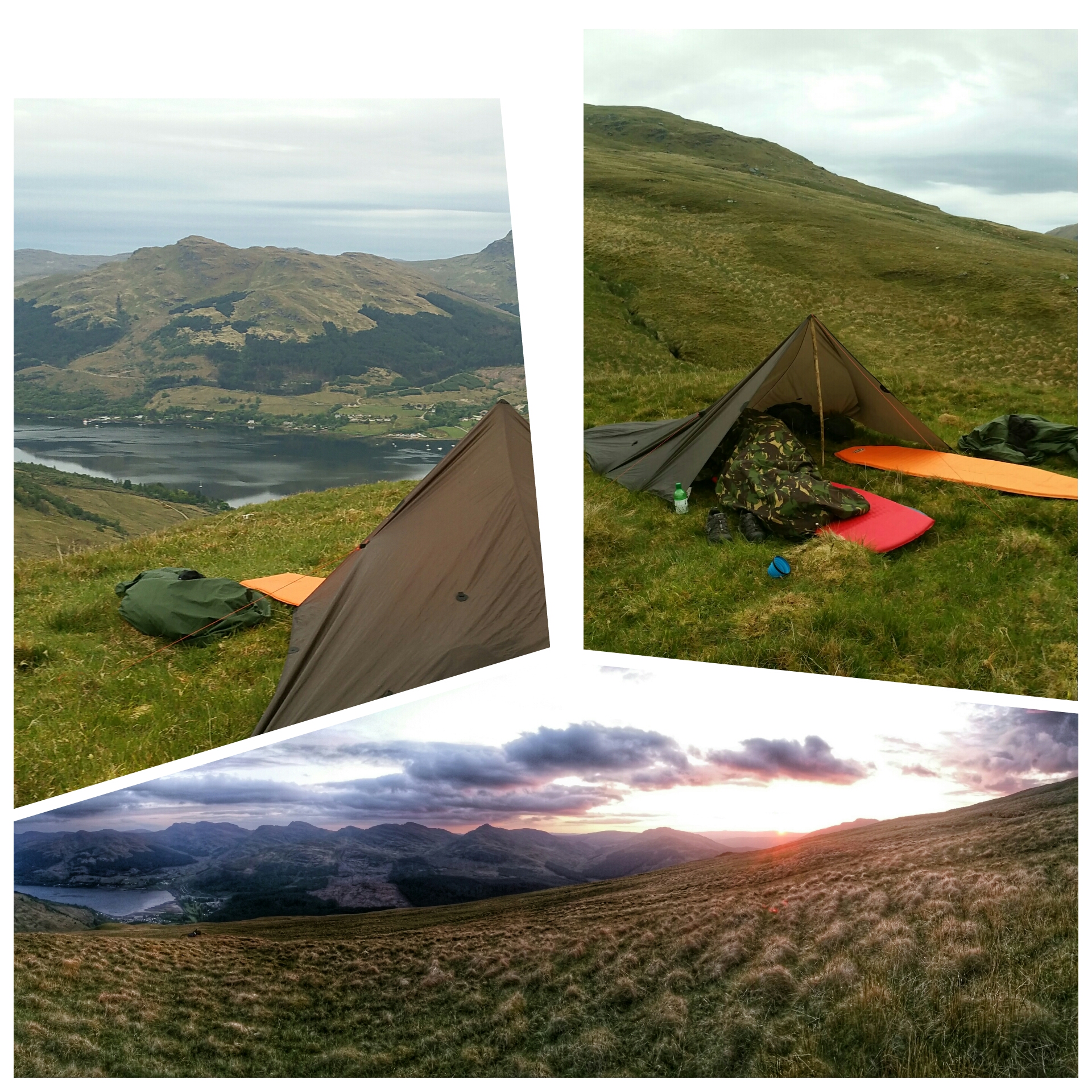 After an hour we set up camp in a suitable spot, just as the sun dropped over the Arrochar hills,
