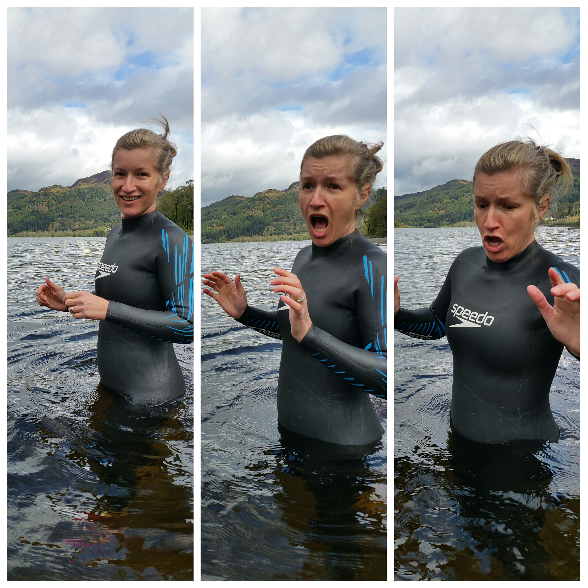 I imagine Numbskulls,(before smart phones and tablets there was the requirement of comics. Numbskulls were characters from the Breezer and Beano) running round my brain trying to deal with all the emergency telegrams from my body’s numbskull extrimities, trying to figure out what’s happening and ordering the brain’s numbskulls to return my body to warmth and safety. It is with a laugh I remember a swim with my wife, after persuading her that the water temperture was heating up earlier at the start of summer. We walked into the water having a conversation, her numbskulls must have been predisposed or sleeping. I managed to capture her normal pose then a couple shocked expressions as the numbskulls went into panic mode.