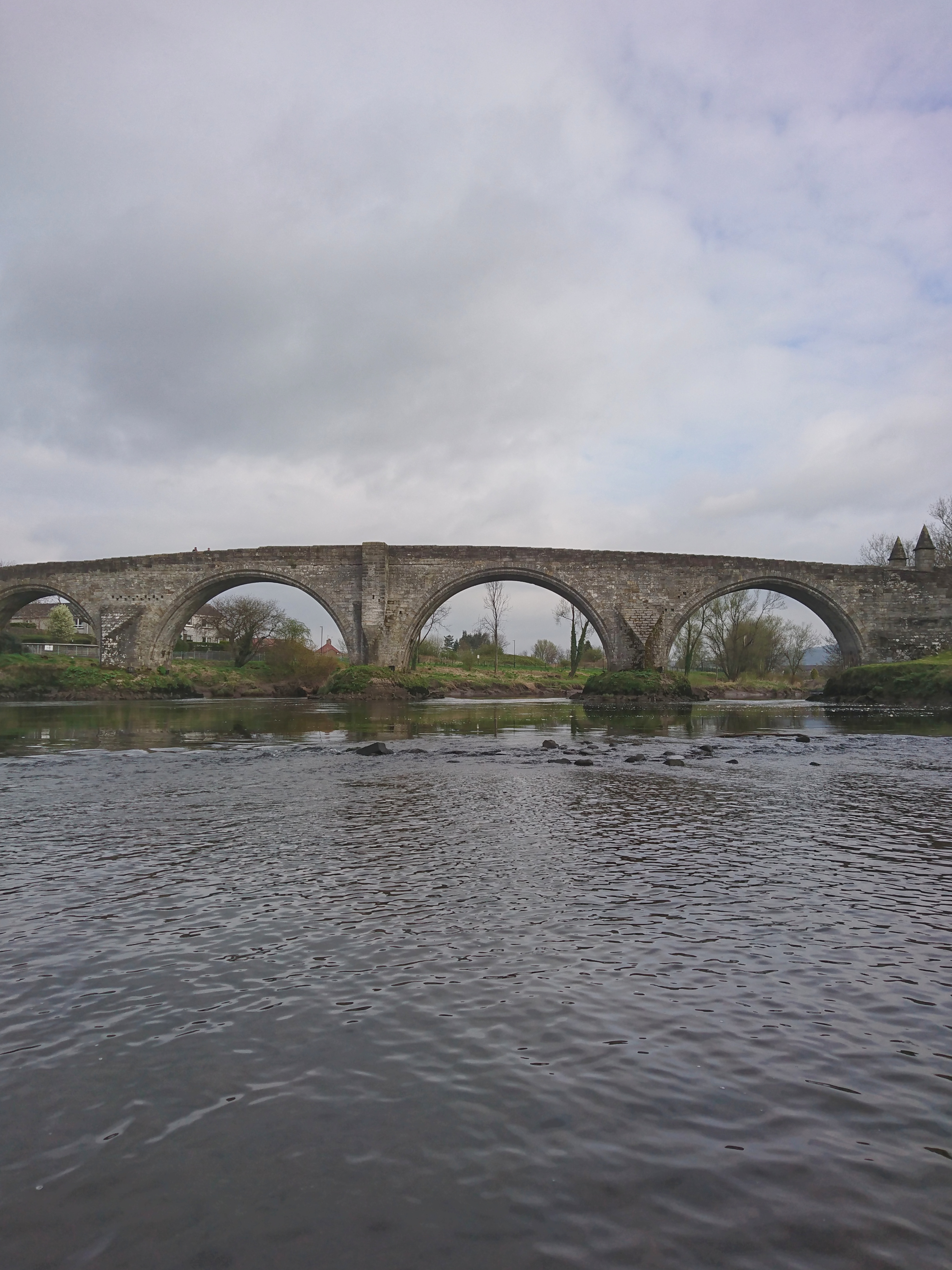 For years I have stood high up on top, looking down at the rushing water through the auld 400 year bridge arches. Its water (I am guessing) is 40 meters across and is affected by the tides and after mighty storms the water flows through in torrents causing crazy eddie’s and whirlpools that can be seen on the surface. It has and would be fatal if an errant adventurer miscalculated their ability. A couple hundred yards to the east and down the river from the auld bridge is the road bridge designed by the famous author Robert Louis Stevenson’s Grandad. At low tide, added with a dry spell, an area of rocks in between the two bridges can be seen for half the distance across the width. I had always wanted to cross here even before I started cold water swimming or having watery adventures.