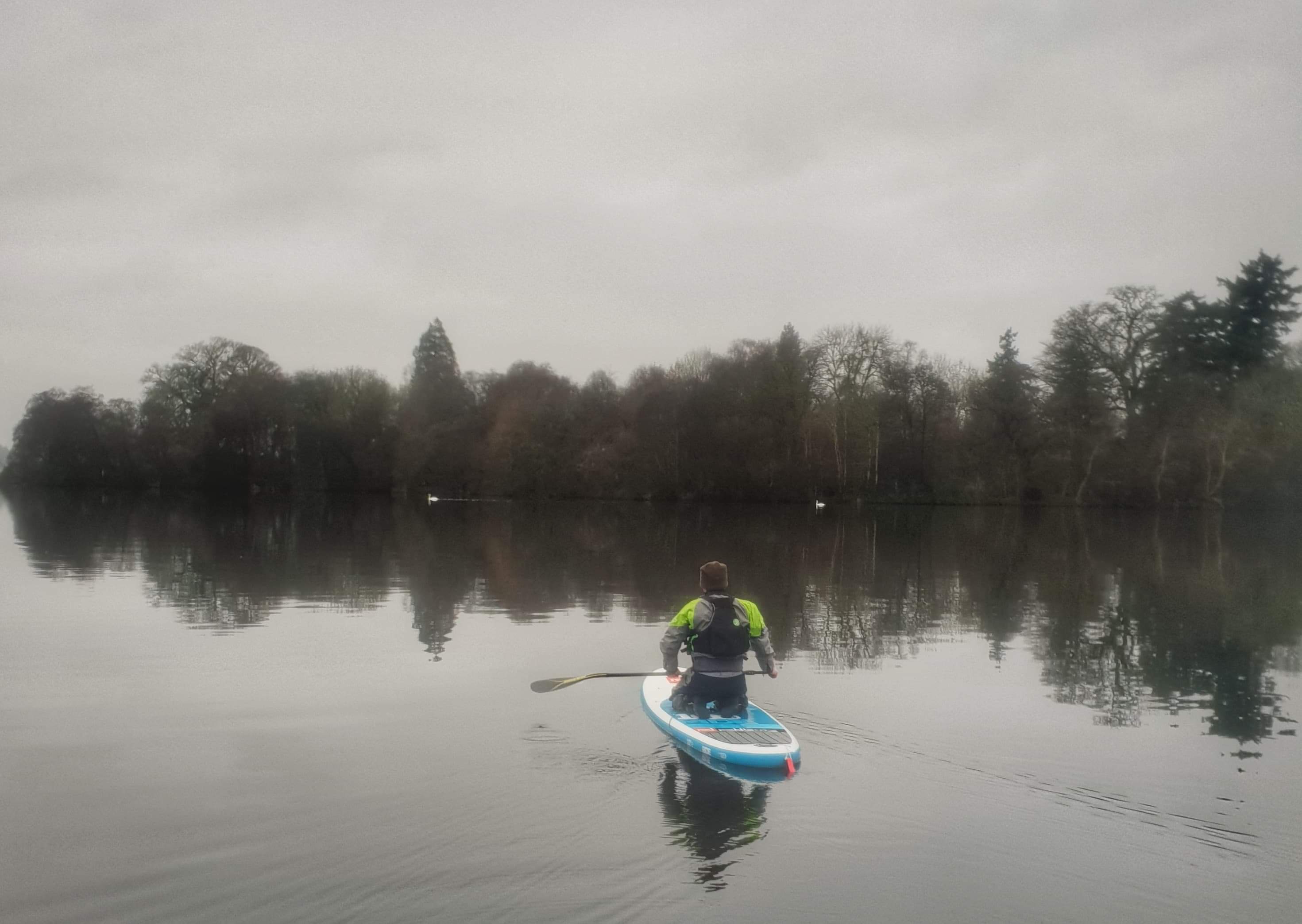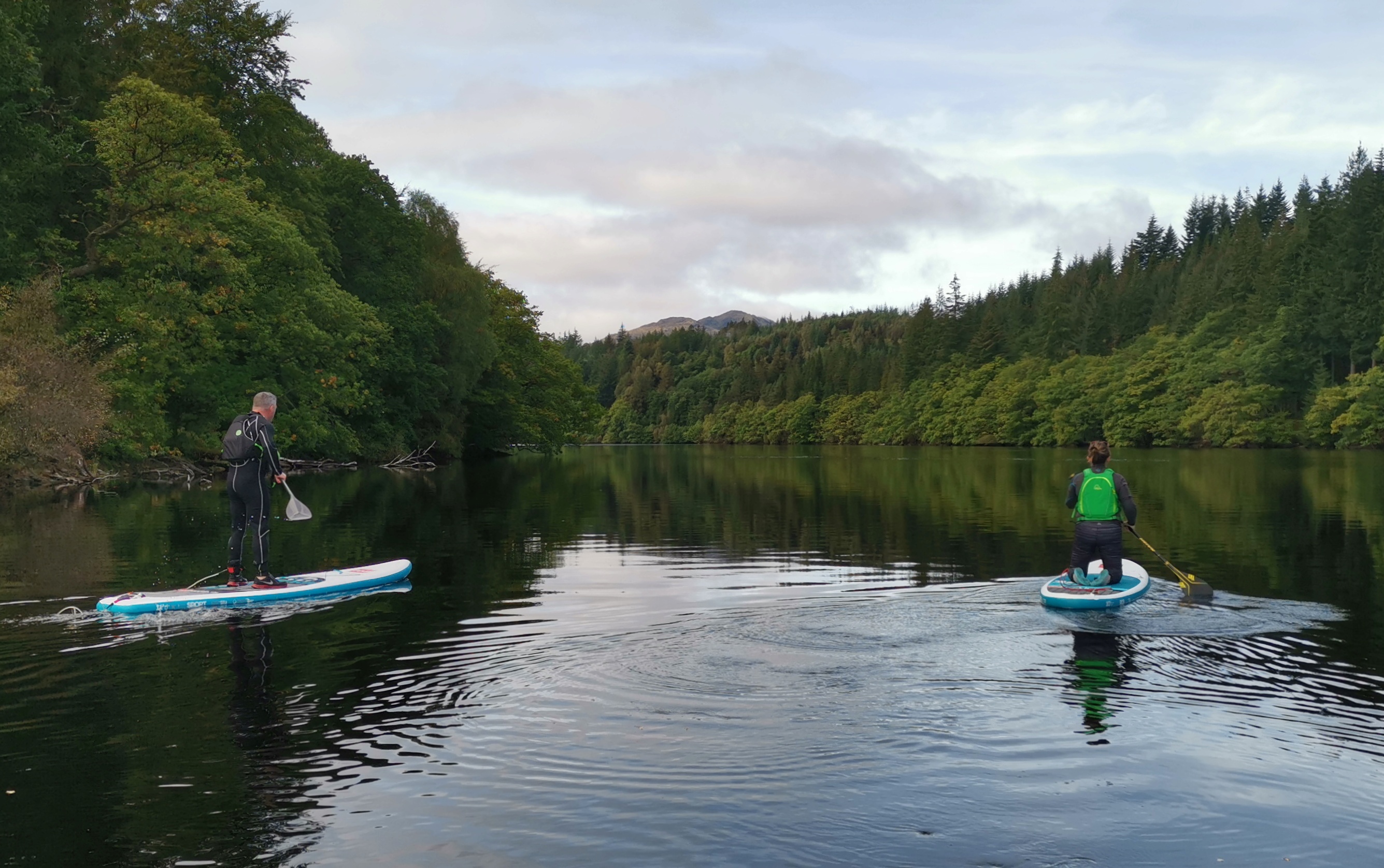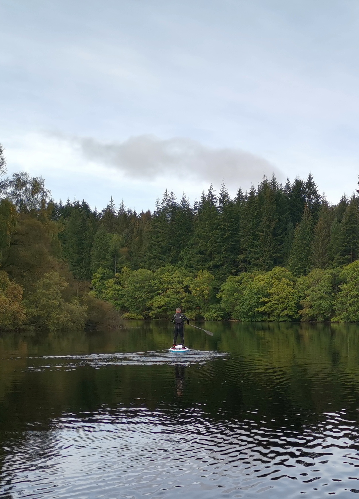 You know, when life is happily bouncing along and a major problem might be which kilt you are going wear that day you kind of forget life is hard for other folk. Well, my friend’s life had taken a tumble with some big dilemmas, (nothing really really serious like kilt issues). Joking aside these were major and his head ended up a wee bit buckled. I suggested his first trip out on the boards. There was a couple things happened that day that I don’t think I will forget. He told me about his line manager sitting him down and giving him a guided meditation. A conversation about meditating followed, something a few years ago I never thought I would ever have had, never mind with him. The other thing was watching him on the flat calm water as wee reached the island just as these two large swans floated past us. Everything slowed down and it was evident he had forgot his worries for a while, forgot his lack of balance, forgot we were a kilometer from the lakeside and forgot how cold the water was.