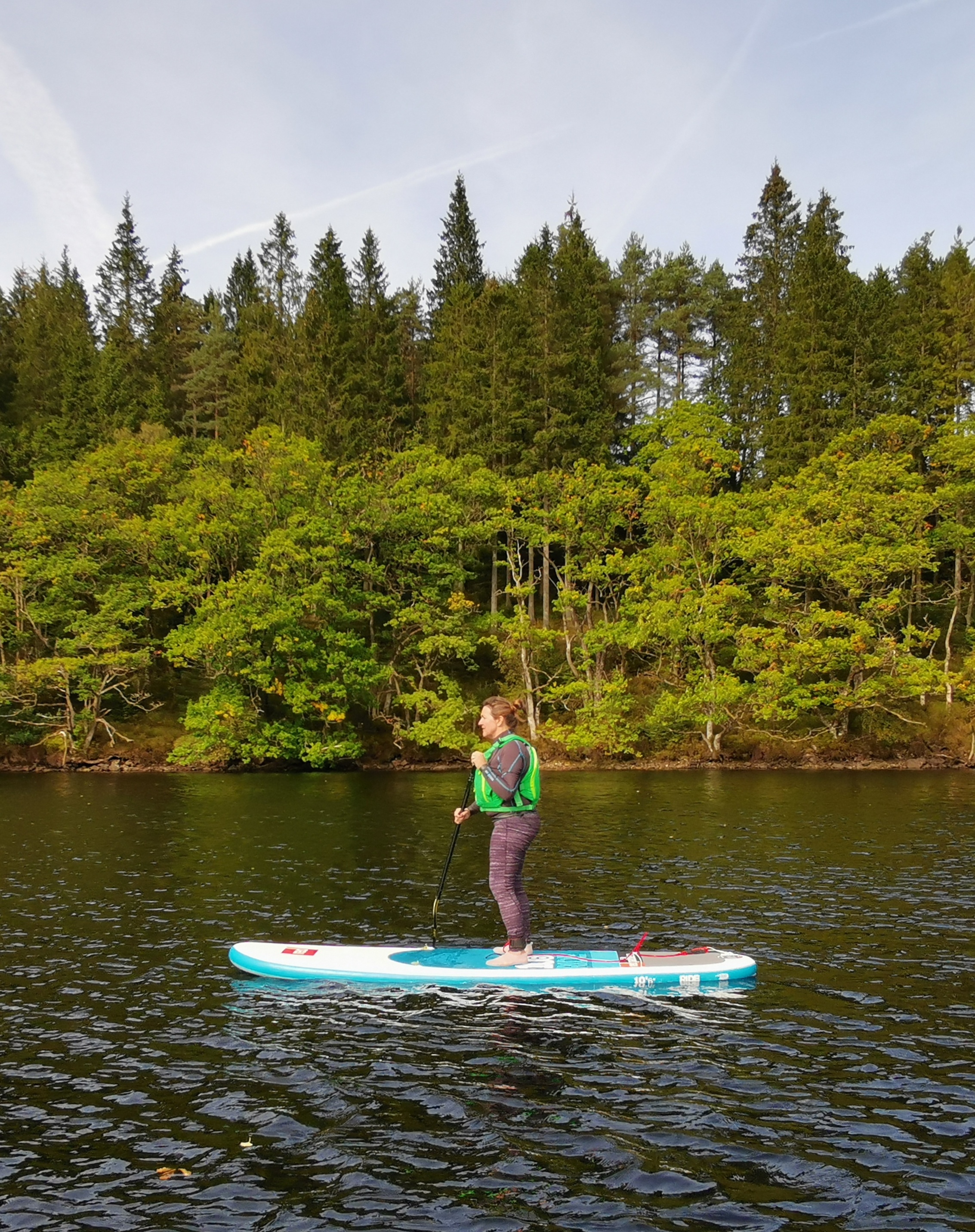 We had a wee glimpse of paradise at Loch Drunkie. Both friends were unstable on thier feet. The one from the Swan experience toppled in after half an hour. It was a great lesson. He climbed back on the board and we laughed. It was if a wee switch clicked in his head. You could see immediately his body form was not rigid anymore and he relaxed. The realisation that the fear of falling in was unnecessary. Maybe last year in November with colder water his fear might have justified but in the late summer temperatures it feels invigorating.